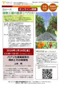 愛媛大学先端農業R&DセンターDコース植物工場の経営(パプリカ)